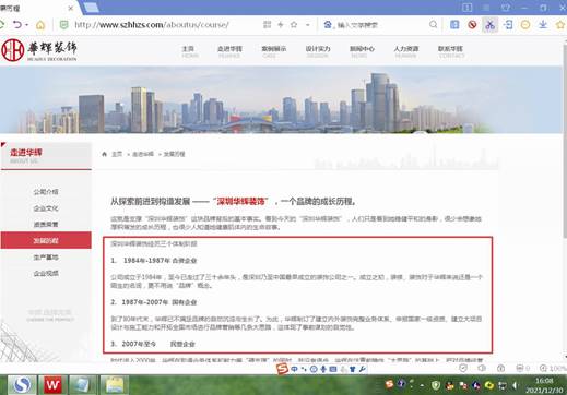 圖五:華輝裝飾官網企業發展歷程截圖