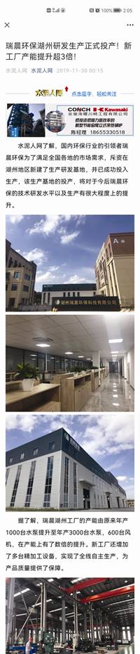 值得一提是,早在2019年11月,水泥人網曾刊發文章,報道瑞晨環保的湖州生產研發基地已成功投入生產,該子公司在2019年底時已實現產能由原來的1000臺水泵提升至3000臺水泵和600臺風機(見圖四),在產能上有了數倍的提升。
