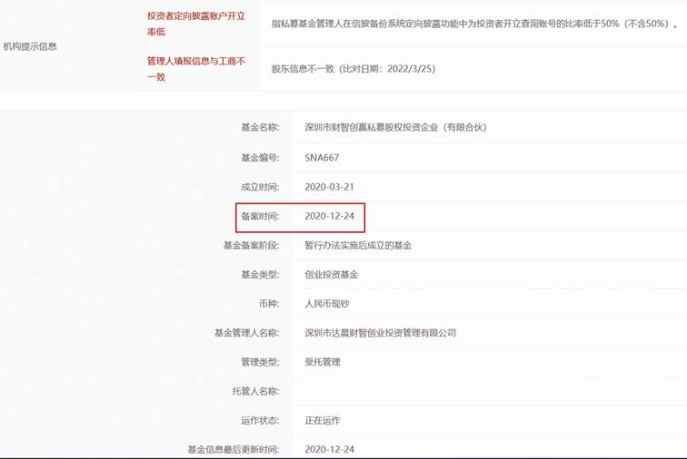 圖二:深圳市財智創贏私募股權投資企業(有限合伙)備案時間