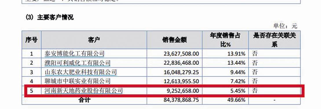 另外,新天地報告期前五大供應商名單中,2019年度和2020年度都出現了山東明大化學科技股份有限公司(以下簡稱“明大科技”)的身影,該企業向新天地供應氨基磺酸。