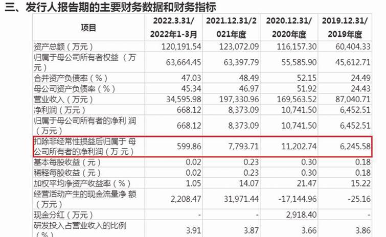 圖一:博菱電器2022年6月招股書扣非凈利潤截圖