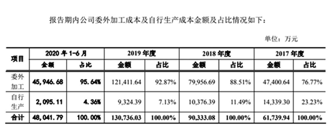 圖二:2020年版招股書披露公司前五大外協(xié)廠商情況截圖