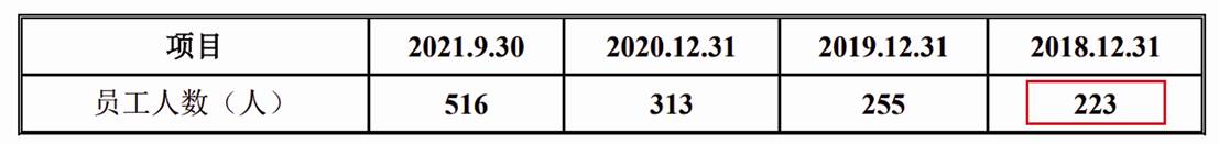 值得一提的是,對于截至2018年末員工人數,安天利信2018年年報披露數據也與招股書存在差異,為218人(見圖三),較招股書披露的223人少了5人(見圖四),而對于2019年末、2020年末員工人數,招股書與年報披露數據均一致。
