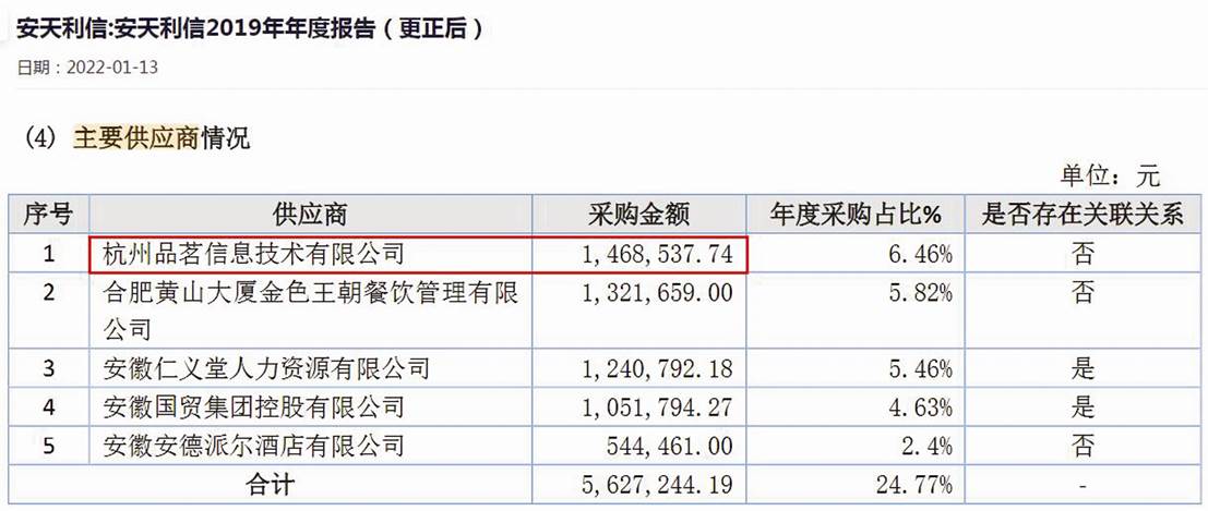 進一步查詢發現,安徽仁義堂人力資源有限公司為安天利信副董事長關聯人實際控制的企業,而在后期更換的人力資源服務供應商也是副董事長關聯企業。