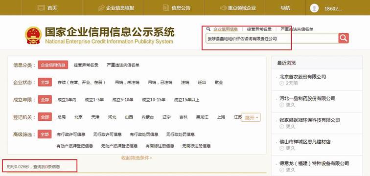 不過,記者在國家企業信用信息公示系統中并未查到武陟縣鑫地地價評估咨詢有限責任公司留存痕跡(見圖一)。