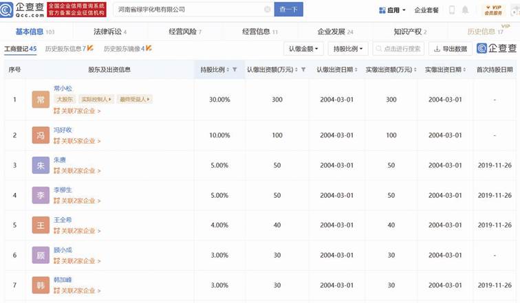 圖二:綠宇化電股東及出資信息部分截圖