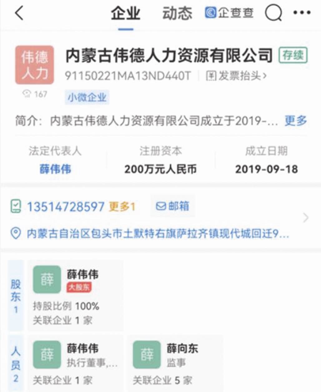 圖二:內蒙古偉德人力資源有限公司企查查截圖