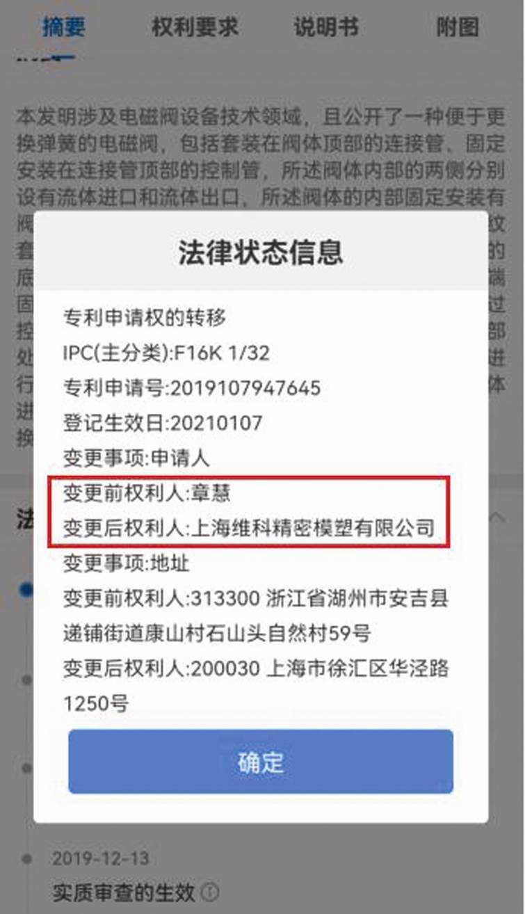 圖四:維科精密受讓“一種便于更換彈簧的電磁閥”發明專利截圖