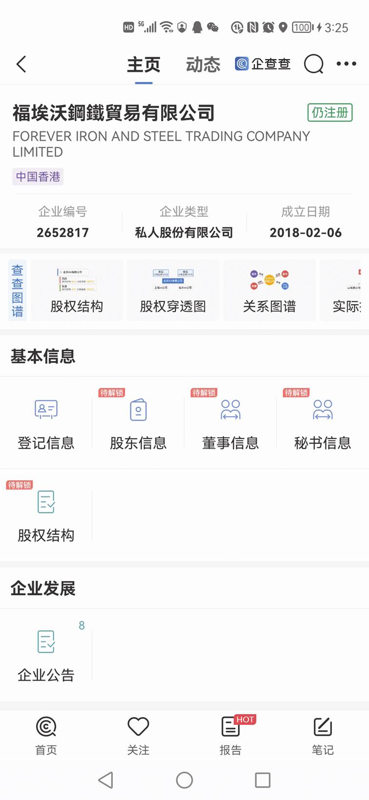 通過企查查查詢的信息顯示,有三家境內(nèi)外注冊企業(yè)與之近似,一家叫福埃沃鋼鐵貿(mào)易有限公司,是注冊地為香港的一家私人股份有限公司,企業(yè)編號為2652817。不過其成立日期為2018年2月6日(見圖一),與公司招股書披露的2004年即引入該外部投資者的時(shí)間明顯“對不上”。