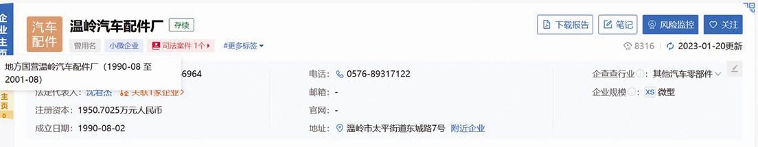圖四:企查查關于溫嶺汽車配件廠的信息