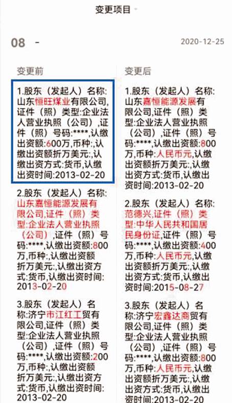 圖三:企查查關于山東嘉恒所持金典典當股權變更截圖
