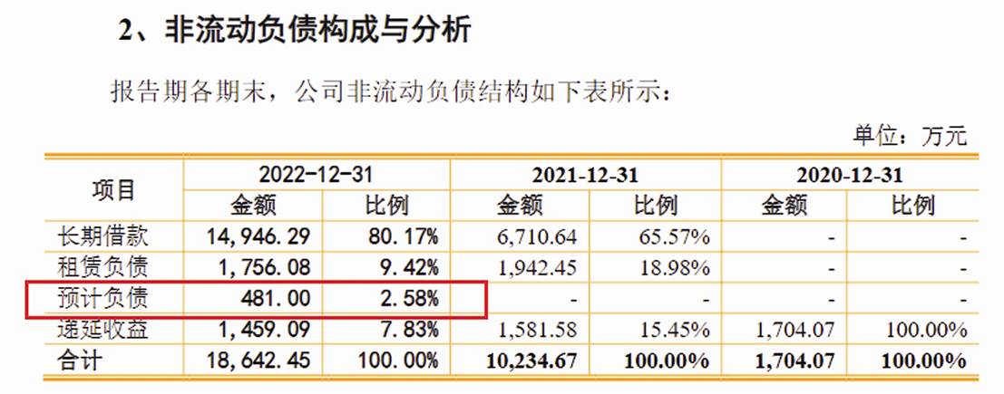招股書顯示,在非流動負債中,截至2022年末,預計負債481萬元。主要是德和科技預計應退政府補助款481萬元(見圖三)。