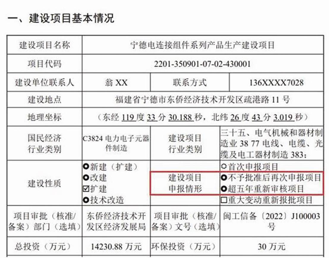 圖二:寧德電連接組件系列產品生產建設項目曾“被否”