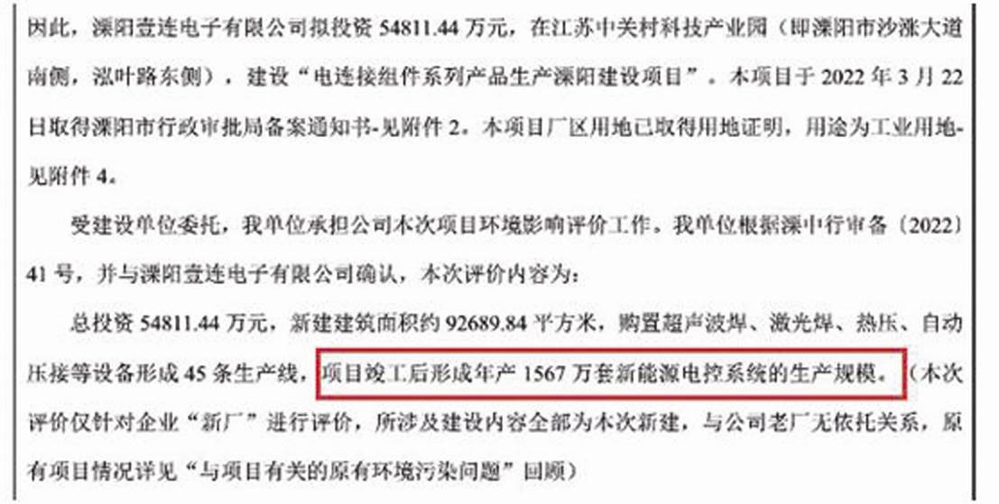 譬如最核心的電連接組件系列產品生產溧陽建設項目,內容僅為:
