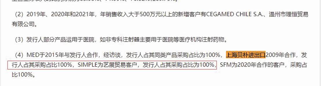 貝普醫療認為:“上海貝樸進出口基于對公司經營能力及產品質量的認可,選擇僅向公司采購相關產品,雙方至今已合作十年以上,作為公司ODM客戶,其基于廠商經營能力、產品質量及價格、合作年限等因素市場化選擇供應商,公司長期為其穩定供應高質量產品,其將相關產品全部向公司采購具備一定合理性?!?/p>