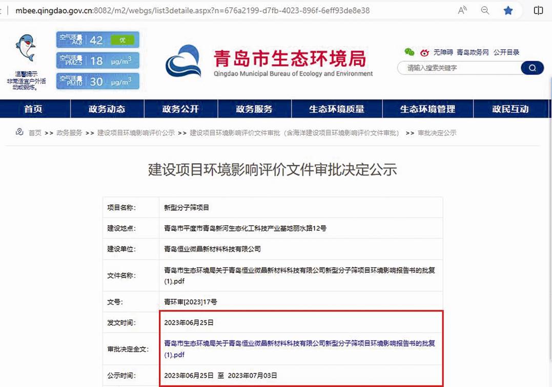 也就是說,恒業(yè)微晶過往的5600噸新型分子篩產(chǎn)品新建產(chǎn)能項(xiàng)目是拿到環(huán)評(píng)批復(fù)后才開工建設(shè)。
