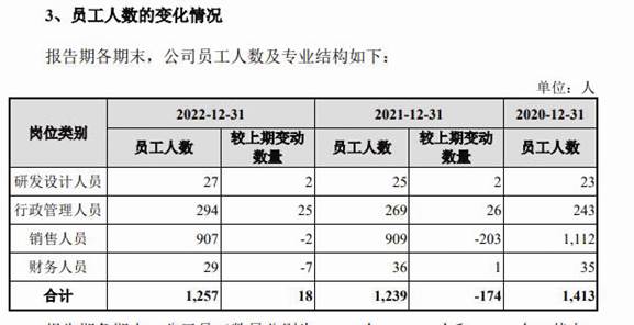 2020-2022年,招股書披露的迪柯尼員工數量分別為1413人、1239人,1257人(見圖一),其中,2021年較2020年減少174人,超過員工總數的10%。