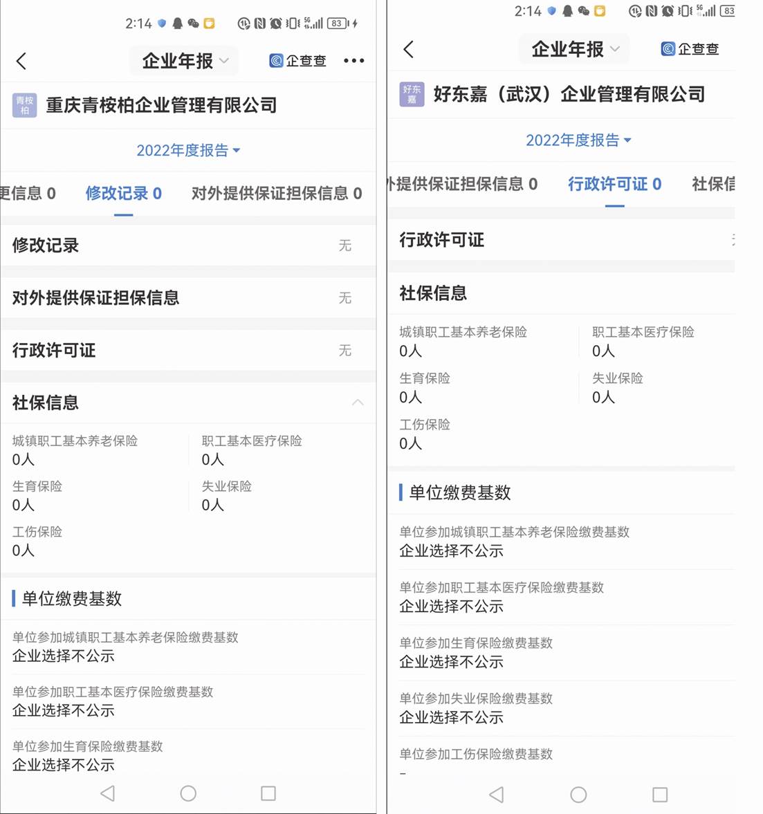 圖五:好東嘉、重慶青桉柏社保情況企查查截圖