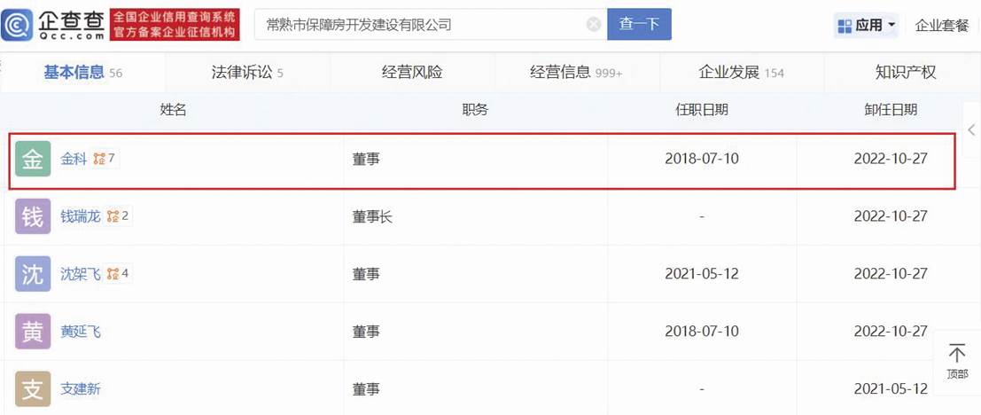 在招股書中披露的金科簡歷中,中法水務未提及其曾任保障房公司董事的經歷:“金科,董事長,男,1974年10月出生,中國國籍,無境外永久居留權,本科學歷,高級經濟師。1993年參加工作,1993年至1998年任常熟市市政工程養護管理處職員,1998年至2005年任常熟市路燈管理處科員,2005年至2006年任常熟市路燈安裝工程公司經理、常熟市路燈管理所副所長,2006年至2012年任常熟市路燈養護所所長(其中,2006年至2008年兼任常熟市市政公用事業管理處副主任),2012年至2021年任天然氣公司總經理,2019年11月至今任城投公司副總經理,現任股份公司董事長。”