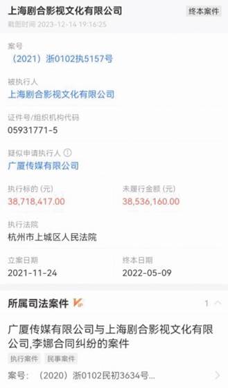 圖二:企查查關(guān)于上海劇合終本案件截圖