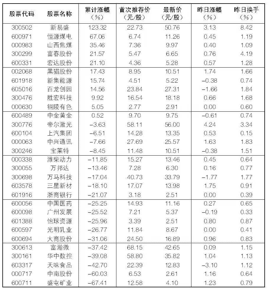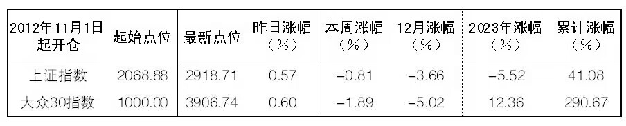 12月21日“大眾30”成份股報告