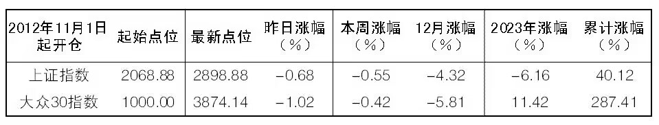 12月26日“大眾30”成份股報告