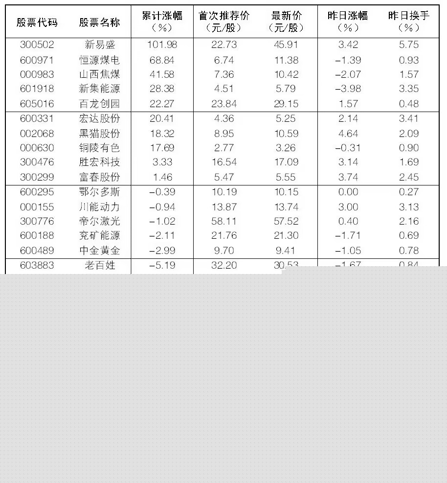 30成份股11日漲幅前五位的是黑貓股份、富春股份、新易盛、勝宏科技、川能動力,漲幅分別為4.64%、3.74%、3.42%、3.14%、3%;跌幅方面,新集能源、山西焦煤、兗礦能源、老百姓跌幅居前。
