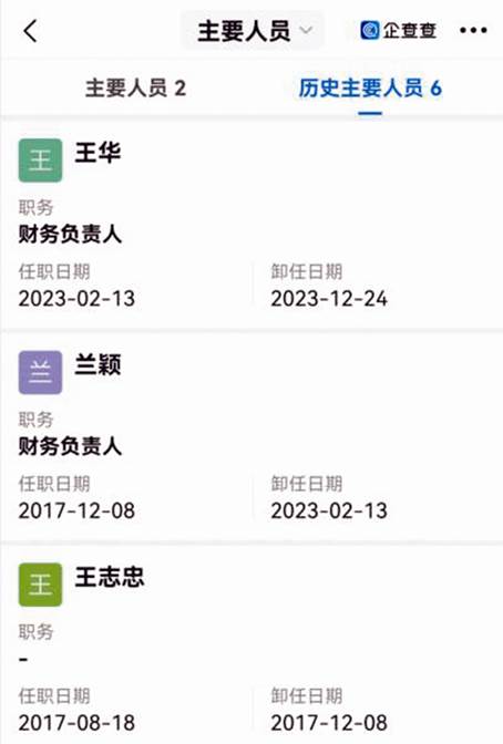 圖一:企查查關于瑞米建材歷史主要人員截圖