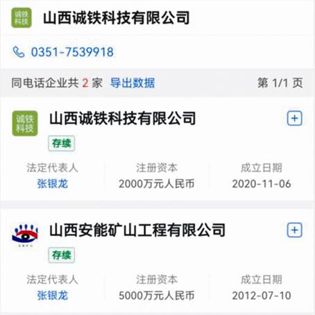 值得一提的是,根據工商登記信息來看,2023年3月2日之前,安能礦山還由王建中控股,2020年成立且由張銀龍控股的山西誠鐵科技有限公司在2021年年報中卻使用了安能礦山的聯系電話。