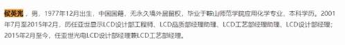 更讓人訝異和難以理解的是,亞世光電于2019年披露的招股書顯示:“侯英光自2015年2月至今,任亞世光電LCD工藝部經(jīng)理。(見圖四)”其為亞世光電的核心技術(shù)人員。