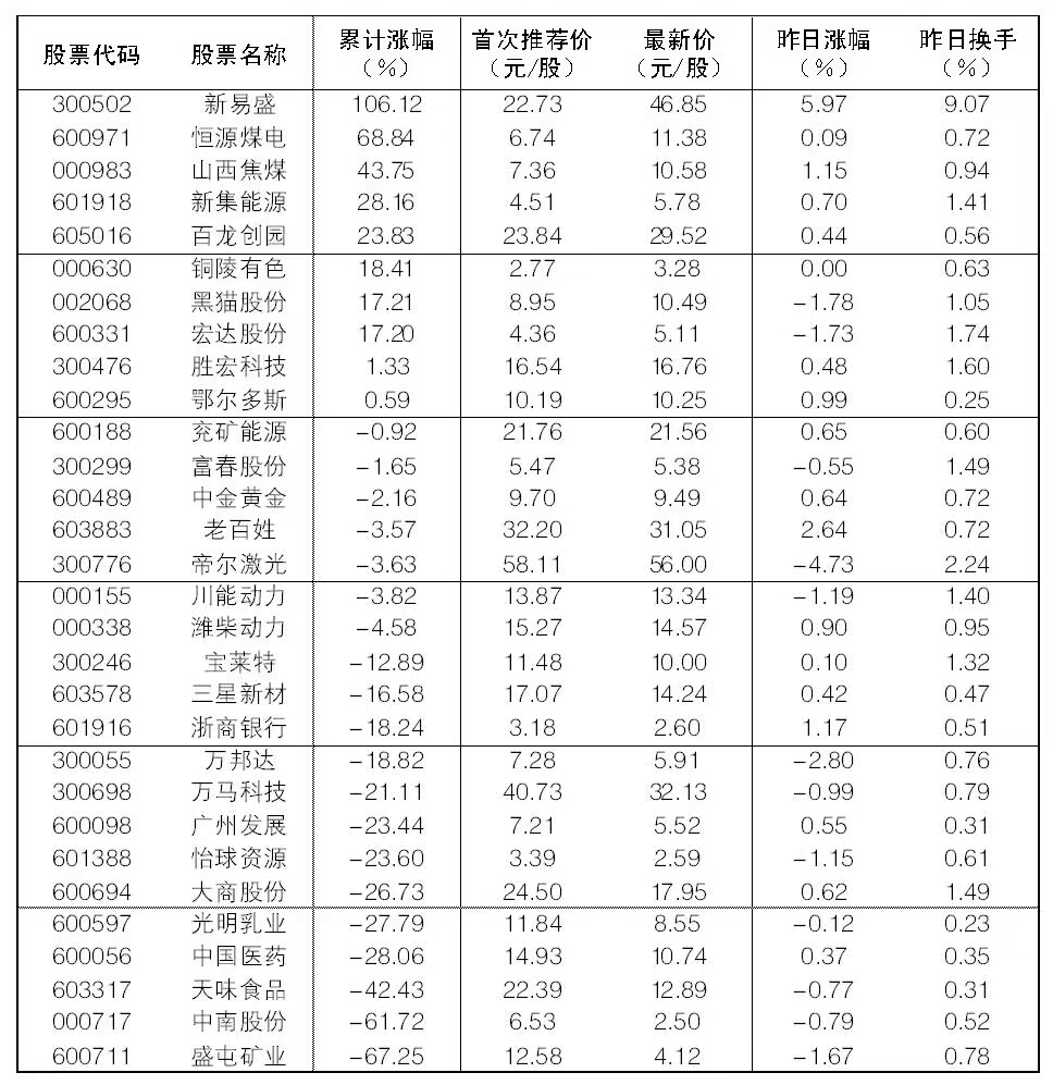 30成份股15日漲幅前五位的是新易盛、老百姓、招商銀行、山西焦煤、鄂爾多斯,漲幅分別為5.97%、2.64%、1.17%、1.15%、0.99%;跌幅方面,帝爾激光、萬邦達、黑貓股份、宏達股份跌幅居前。
