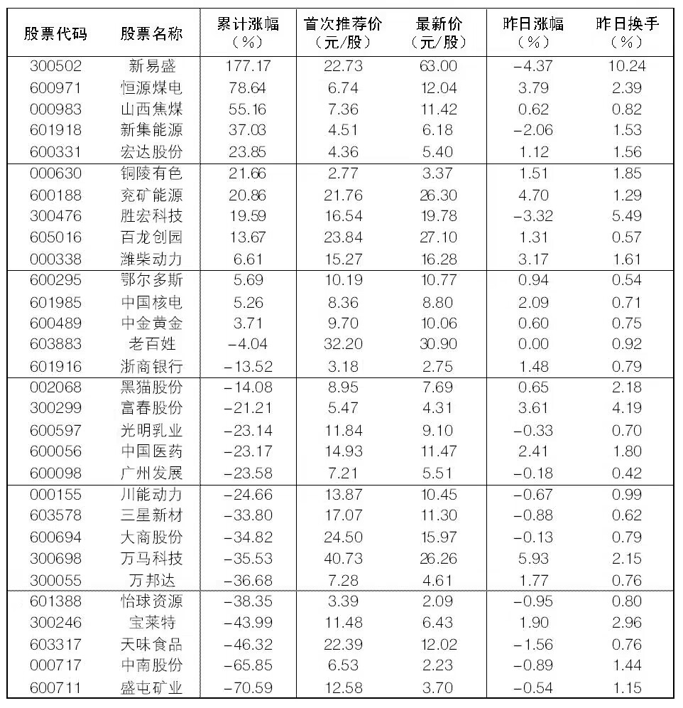30成份股20日漲幅前五位的是萬馬科技、兗礦能源、恒源煤電、富春股份、濰柴動力,漲幅分別為5.93%、4.70%、3.79%、3.61%、3.17%;跌幅方面,新易盛、勝宏科技、新集能源、天味食品跌幅居前。