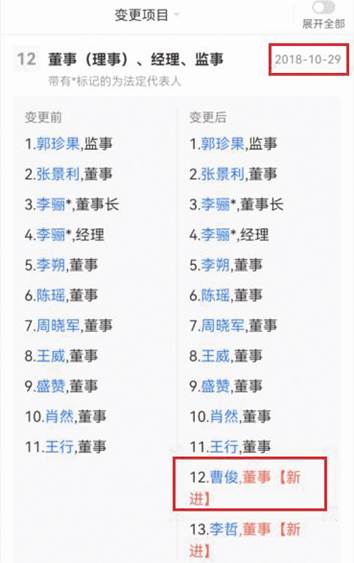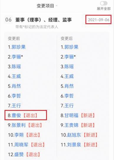 但是,通過企查查查詢的北京華捷艾米科技有限公司(以下簡稱“華捷艾米”)工商登記信息顯示,曹俊于2018年10月29日新進成為董事,2021年9月6日御任(見圖一)。