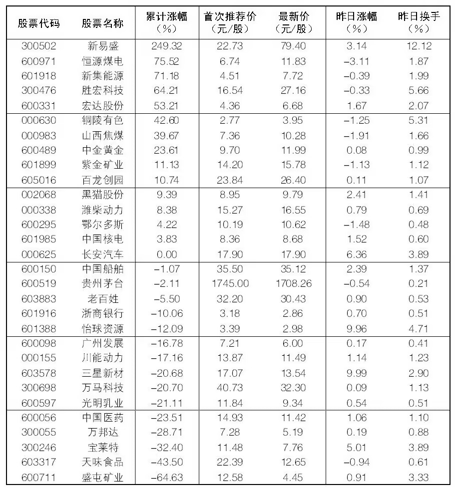周二,大眾30選入長安汽車,調(diào)出兗礦能源。