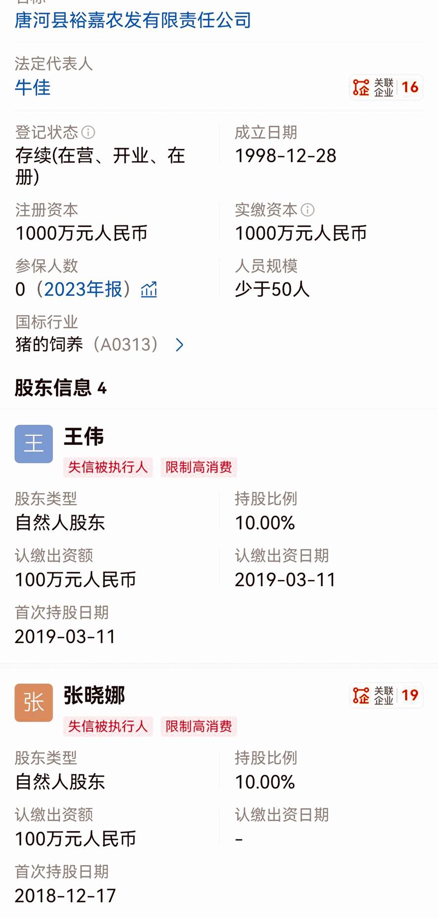 而且,唐河縣裕嘉農發有限責任公司、河南裕嘉農業發展有限公司和張曉娜目前均為失信被執行人,張曉娜還是被限制高消費人群。