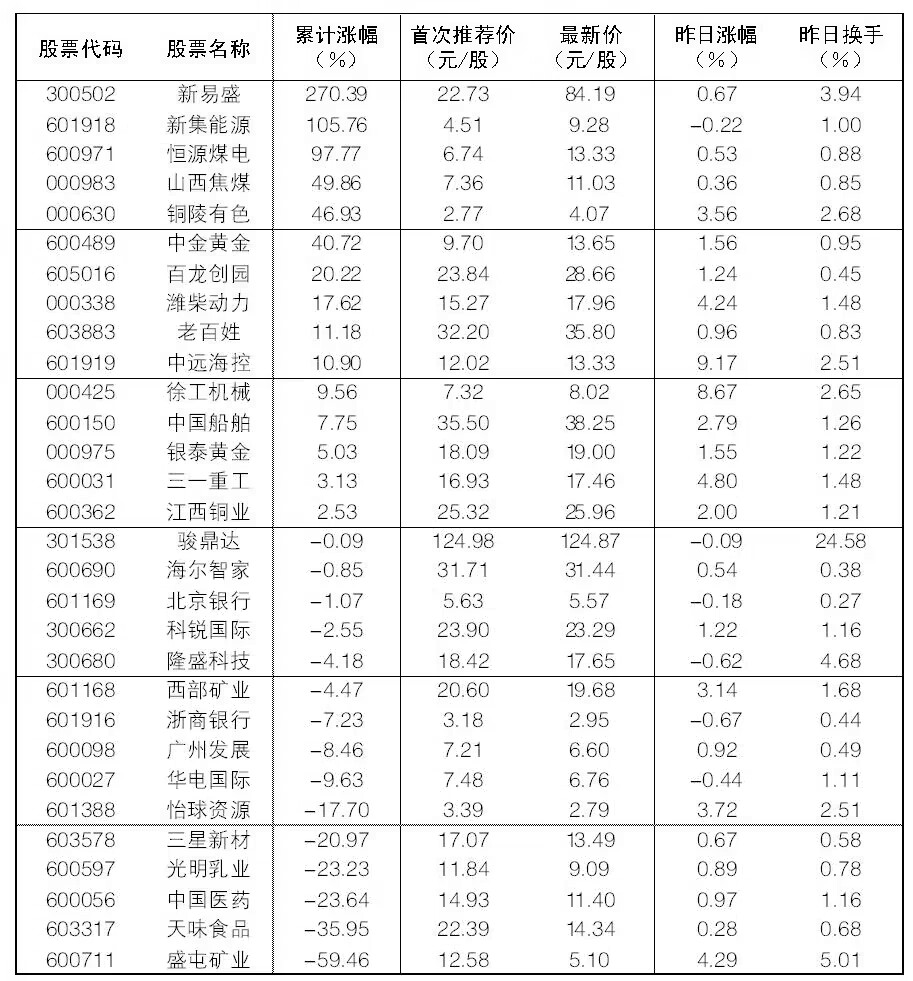 30成份股9日漲幅前五位的是中遠(yuǎn)海控、徐工機(jī)械、三一重工、盛屯礦業(yè)、濰柴動力,漲幅分別為9.17%、8.67%、4.80%、4.29%、4.24%;跌幅方面,浙商銀行、隆盛科技、華電國際、新集能源跌幅居前。