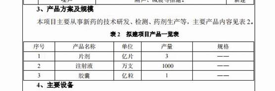 此外,對于總投資2.46億元、擬用募資2.30億元的山東創(chuàng)新藥物研發(fā)、制劑生產(chǎn)基地建設項目(下稱“山東創(chuàng)新募投項目”),公司招股書未披露新建產(chǎn)能情況,而環(huán)評報告顯示其新增年產(chǎn)量達到4.1億片/粒/支,同時環(huán)評報告顯示總投資僅1.6億元,而且預計2020年10月投產(chǎn)。