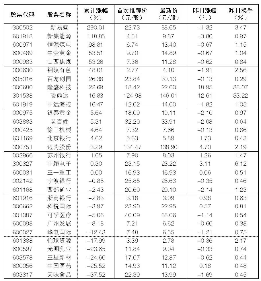 “大眾30”成份股每日報告
