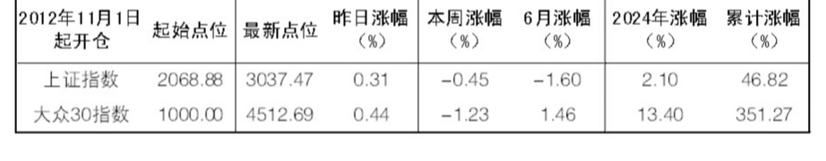 2024年6月12日“大眾30”成份股報告