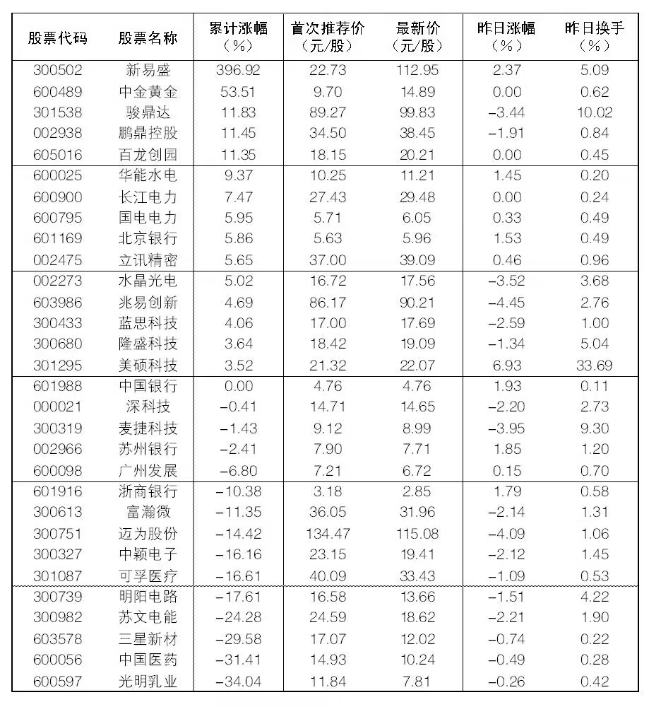 “大眾30”成份股每日報告