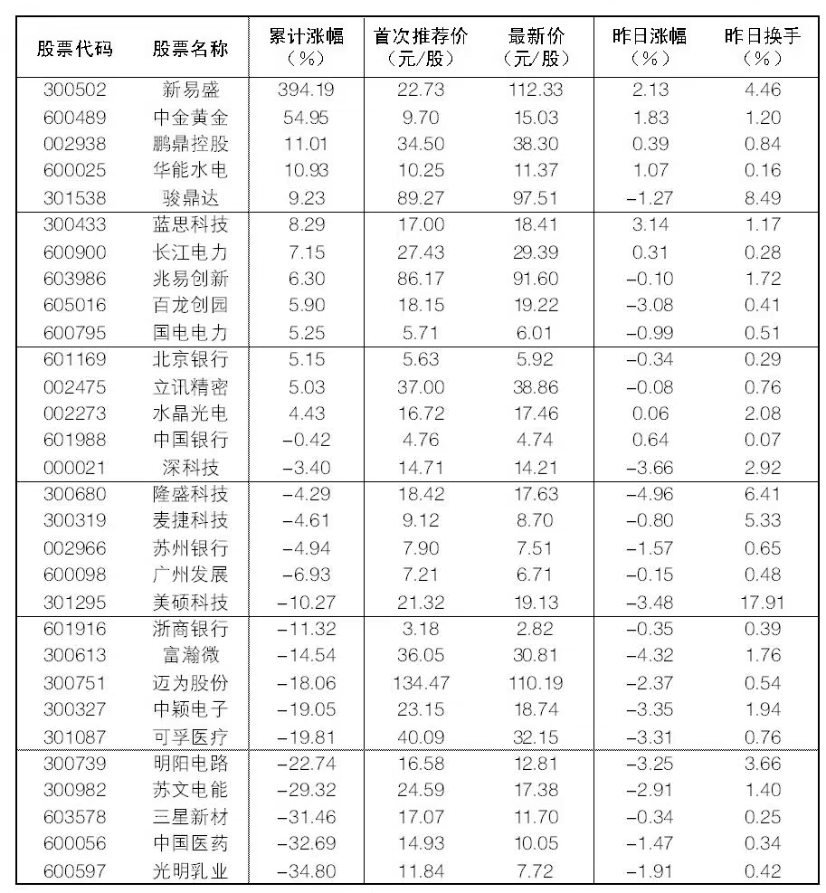 “大眾30”成份股每日報告