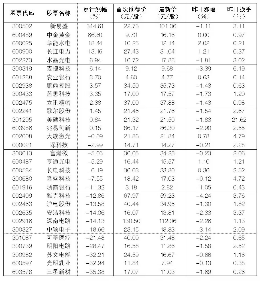 30成份股24日漲幅前五位的是華能水電、長江電力、亨通光電、大族激光、農業銀行,漲幅分別為2.02%、1.21%、1.10%、0.78%、0.63%;跌幅方面,雅克科技、麥捷科技、中穎電子跌幅居前。