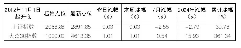 2024年7月29日“大眾30”成份股報告