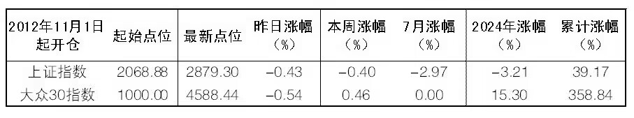 2024年7月30日“大眾30”成份股報告
