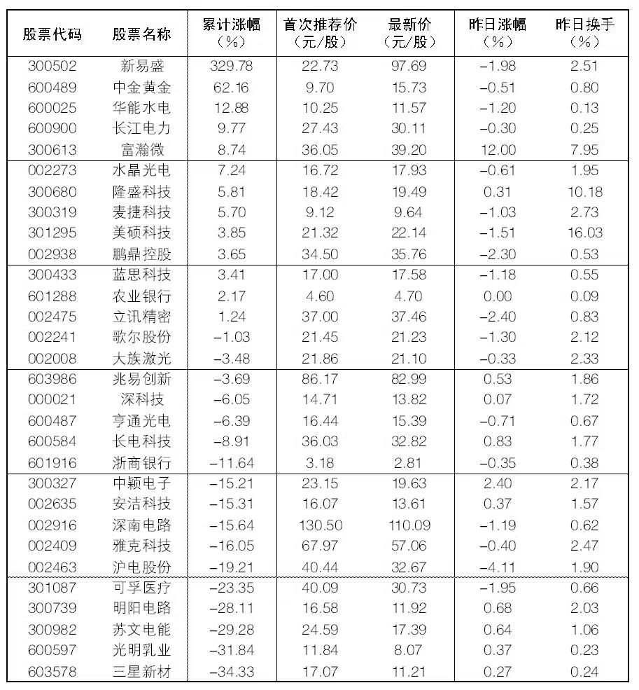 “大眾30”成份股每日報告