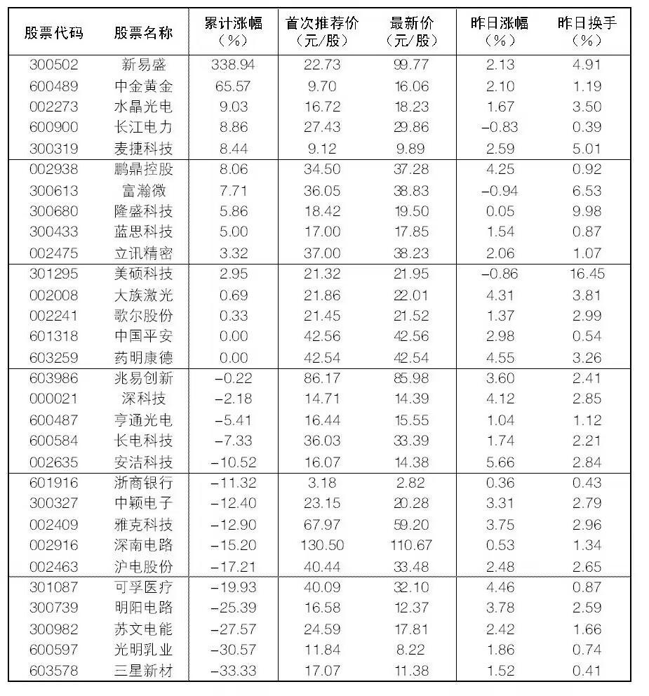30成份股31日漲幅前五位的是安潔科技、可孚醫療、大族激光、鵬鼎控股、深科技,漲幅分別為5.66%、4.46%、4.31%、4.25%、4.12%;跌幅方面,農業銀行、華能水電、富瀚微、美碩科技跌幅居前。