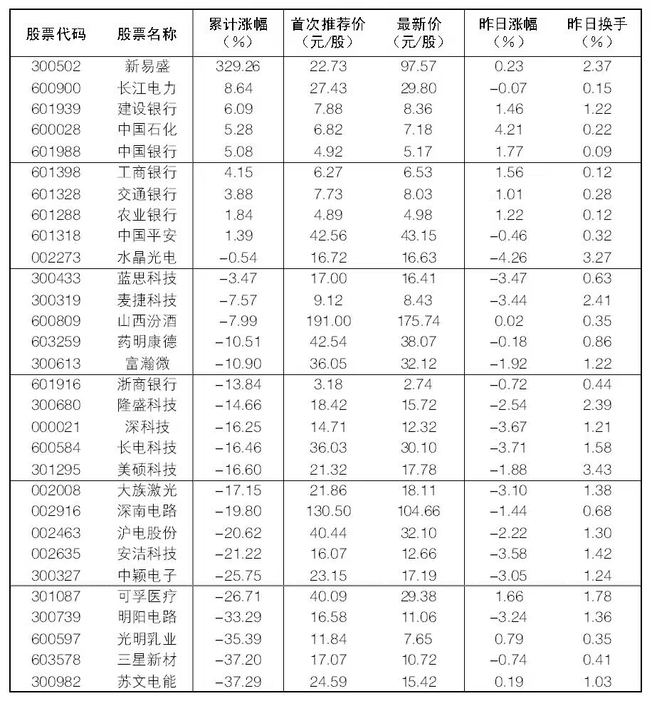 30成份股27日漲幅前五位的是中國石化、中國銀行、可孚醫療、工商銀行、建設銀行,漲幅分別為4.21%、1.77%、1.66%、1.56%、1.46%;跌幅方面,水晶光電、長電科技、深科技、安潔科技跌幅居前。