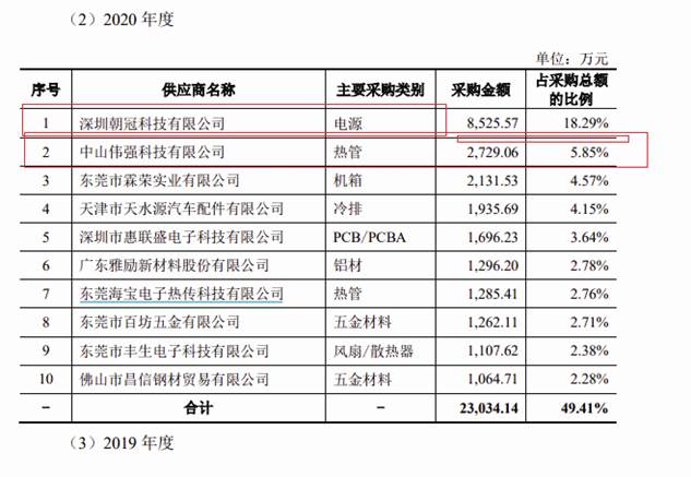 值得一提的是,在上述五大主要供應(yīng)商中,東莞市霖榮實(shí)業(yè)有限公司成立于2016年,成立不久即成為公司的主要供應(yīng)商,且其在2018年至2020年均為公司前十大供應(yīng)商。