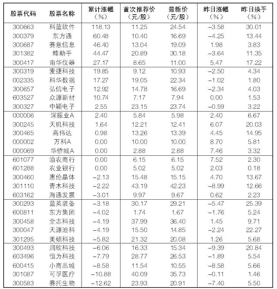 30成份股16日漲幅前五位的是天璣科技、南華儀器、惠倫晶體、高偉達、深振業A,漲幅分別為6.07%、5.47%、4.70%、4.45%、2.40%;跌幅方面,潤欣科技、青木科技、小商品城、賽托生物跌幅居前。