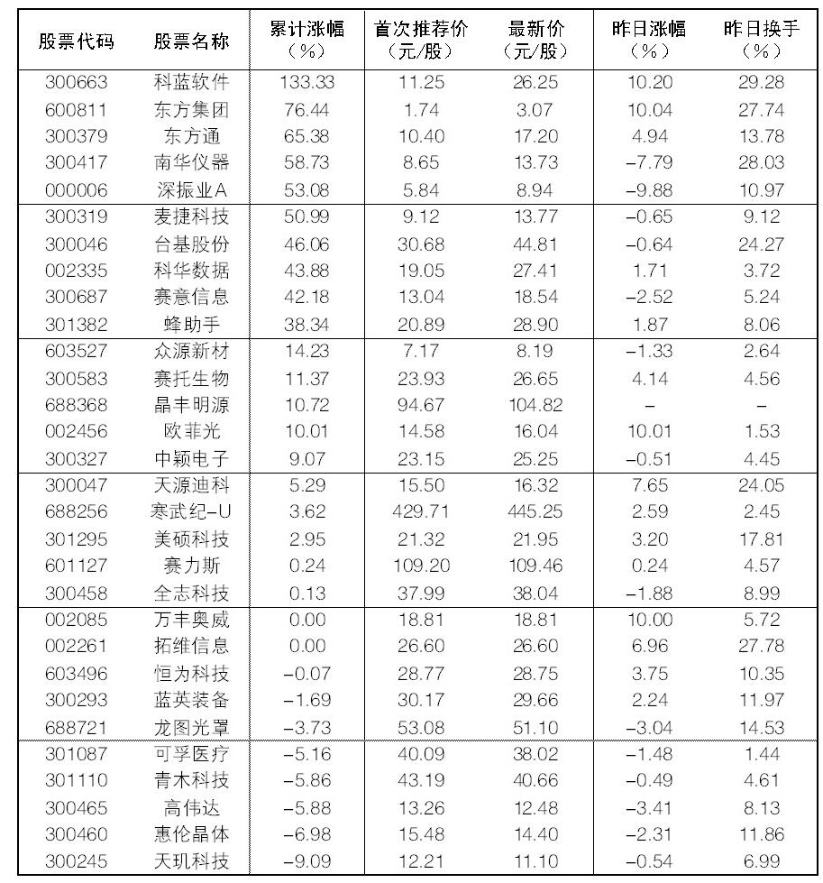 30成份股30日漲幅前五位的是科藍(lán)軟件、東方集團(tuán)、歐菲光、天源迪科、東方通,漲幅分別為10.20%、10.04%、10.01%、7.65%、4.94%;跌幅方面,深振業(yè)A、南華儀器、中芯國(guó)際、潤(rùn)欣科技跌幅居前。